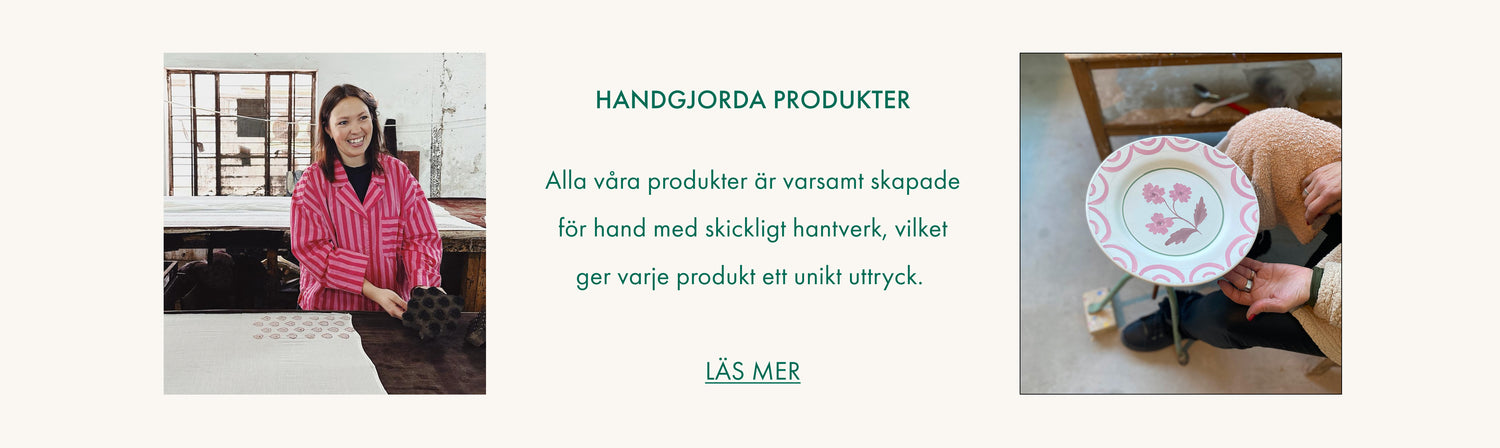 Alla våra produkter är varsamt skapade för hand med skickligt hantverk, vilket ger varje produkt ett unikt uttryck.