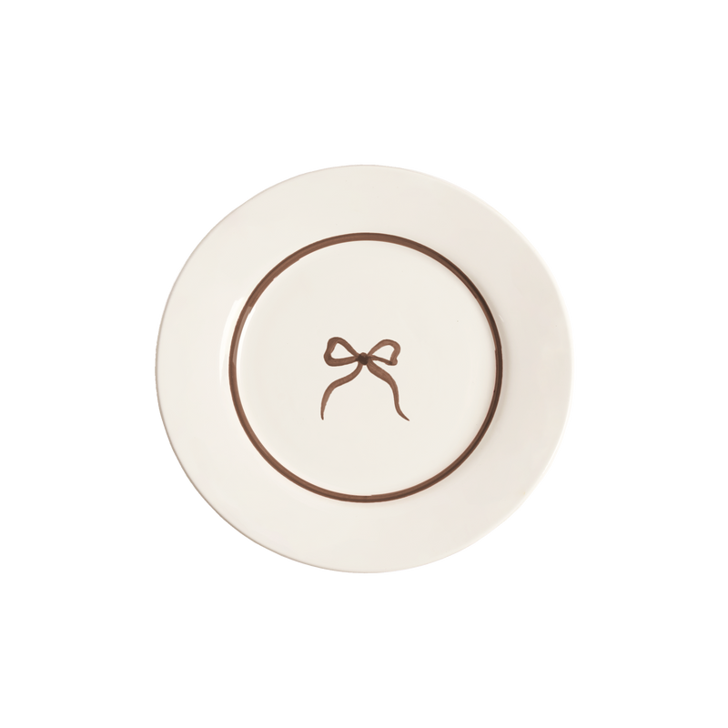 Denna produkt är en del av vår kollektion Bow. Handgjord och handmålad i Portugal av konsthantverkare adderar vår assiett Bow en romantisk men tidlös känsla till varje bord. Denna assiett har en klassisk vit design med varma kontraster av brunt, där vår ikoniska POPPY-rosett står i centrum.