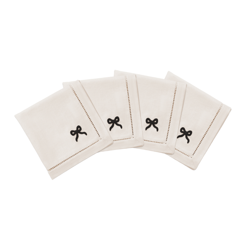 Oavsett om du ska annordna en formell middagsbjudning eller intar en avslappnad måltid i trädgården, tillför vår flirtiga men sofistikerade bomullsservett en touch av lekfull elegans. Bow är handgjord i 100% bomull och kommer i en krispigt vit färg, handbroderad med vår ikoniska POPPY-rosett i en kontrasterande färg. Servetterna säljs i 4-pack – perfekta att duka med för att skapa en genomtänkt och charmig atmosfär runt bordet.