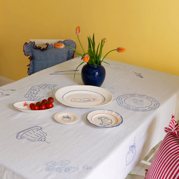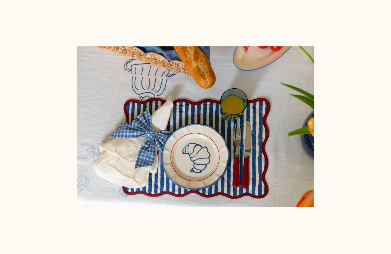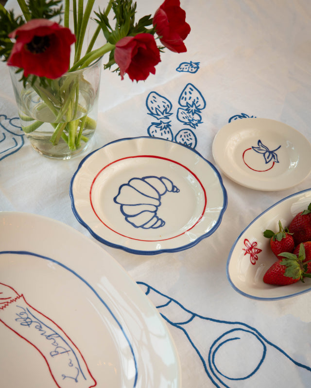 Discover this summer collection, PICNIC, introducing a limited series of hand-painted ceramics and embroidered textiles, inspired by a love for French cuisine and the philosophy of finding beauty in simplicity – from rustic meals to carefully set tables.