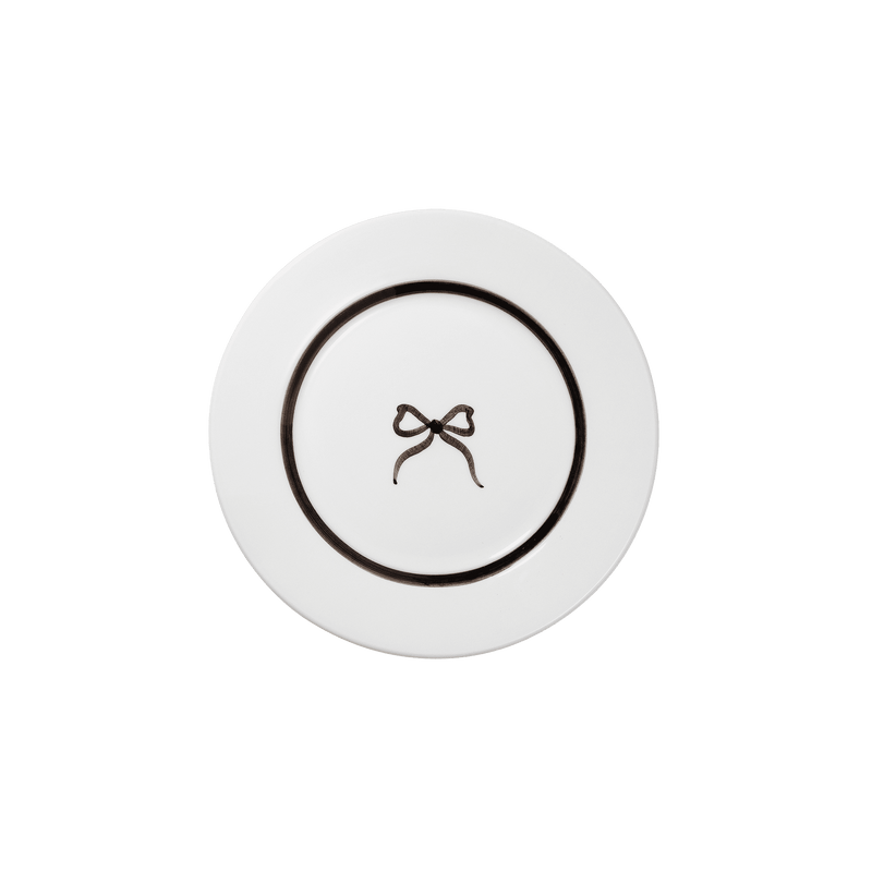 This product is part of our Bow Collection. Handmade and hand-painted in Portugal by our beloved artisans, our Bow Salad Plate adds a romantic yet timeless feel to any tabletop and goes perfectly with our large Bow dinner plate. It features a classical white expression with contrasts of black, where our iconic POPPY bow takes center stage.