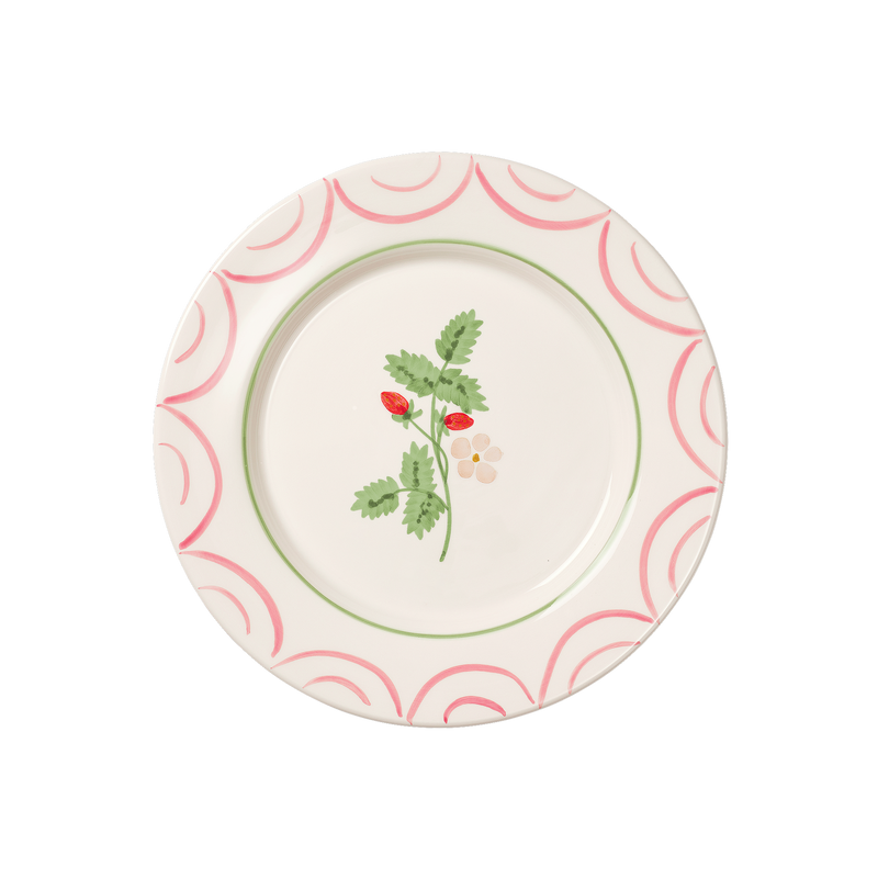 This dinner plate is part of the Cottage Flower collection. The plate is handcrafted in ceramic using traditional Portuguese techniques and hand-painted with a wild strawberry motif. It’s the perfect choice for summery lunches and dinners. Pair it with other plates from the Cottage Flower collection or mix freely for a playful table setting.