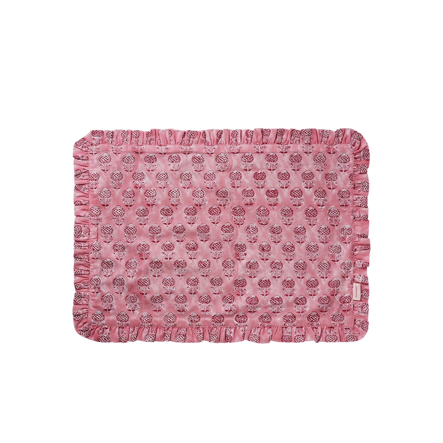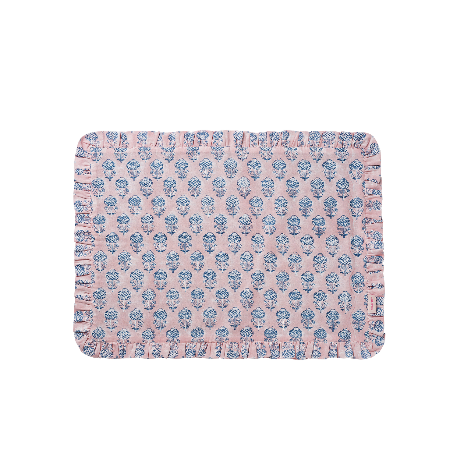 Enhance your table setting with our Poppy Seed Placemat. Crafted from 100% cotton and block-printed by hand using traditional butti print techniques and ancient craftsmanship from Jaipur, this textile placemat features a decorative frilled edge and is available in various color combinations to complement our other Butti-printed textiles.