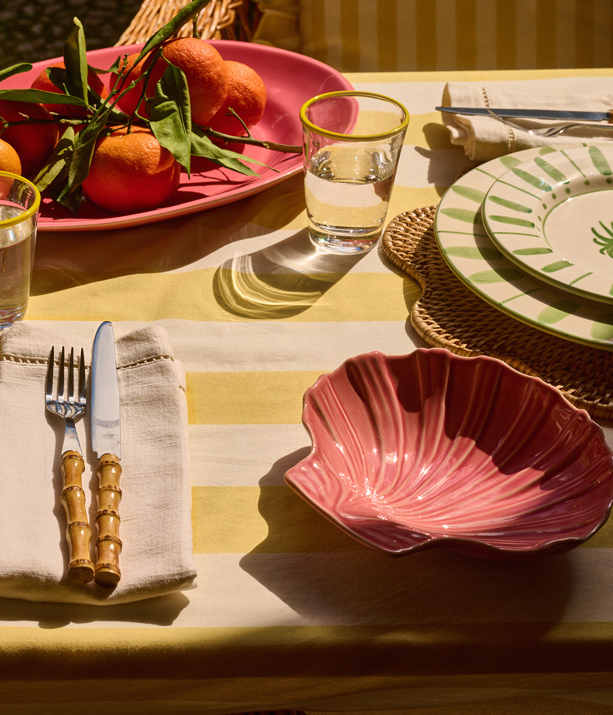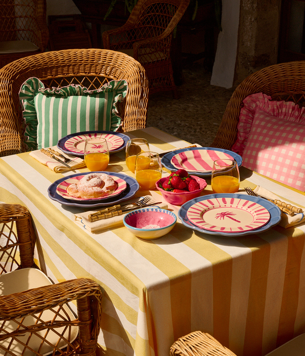Infuse your dining area with a playful ambiance in true POPPY spirit. Our tablecloths are available in different sizes and colors tailored to suit your table and the occasion at hand. Handmade and yarn-dyed with ancient craftsmanship from Jaipur, our Breton Tablecloth makes us long for a sunny brunch by the Mediterranean Sea. Pair with our hand-painted Stripe Ceramic plates to get the full riviera experience!