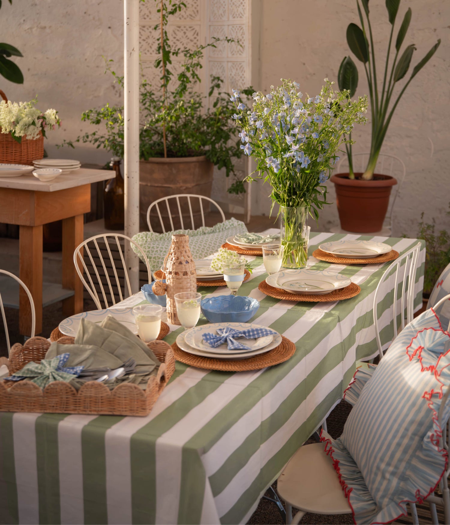 Infuse your dining area with a playful ambiance in true POPPY spirit. Our tablecloths are available in different sizes and colors tailored to suit your table and the occasion at hand. Handmade and yarn-dyed with ancient craftsmanship from Jaipur, our Breton Tablecloth makes us long for a sunny brunch by the Mediterranean Sea. Pair with our hand-painted Stripe Ceramic plates to get the full riviera experience!
