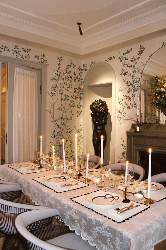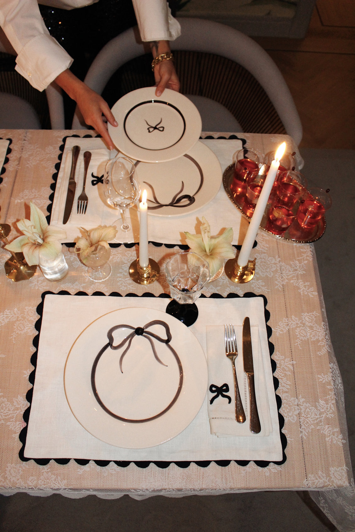 Den eleganta kollektionen Bow inkluderar både keramik och textil prydd med dekorativa rosetter. Med fokus på nogrannhet i varje detalj är varje tallrik och servett designad för att skapa en sofistikerad och harmonisk atmosfär kring ditt dukade bord!