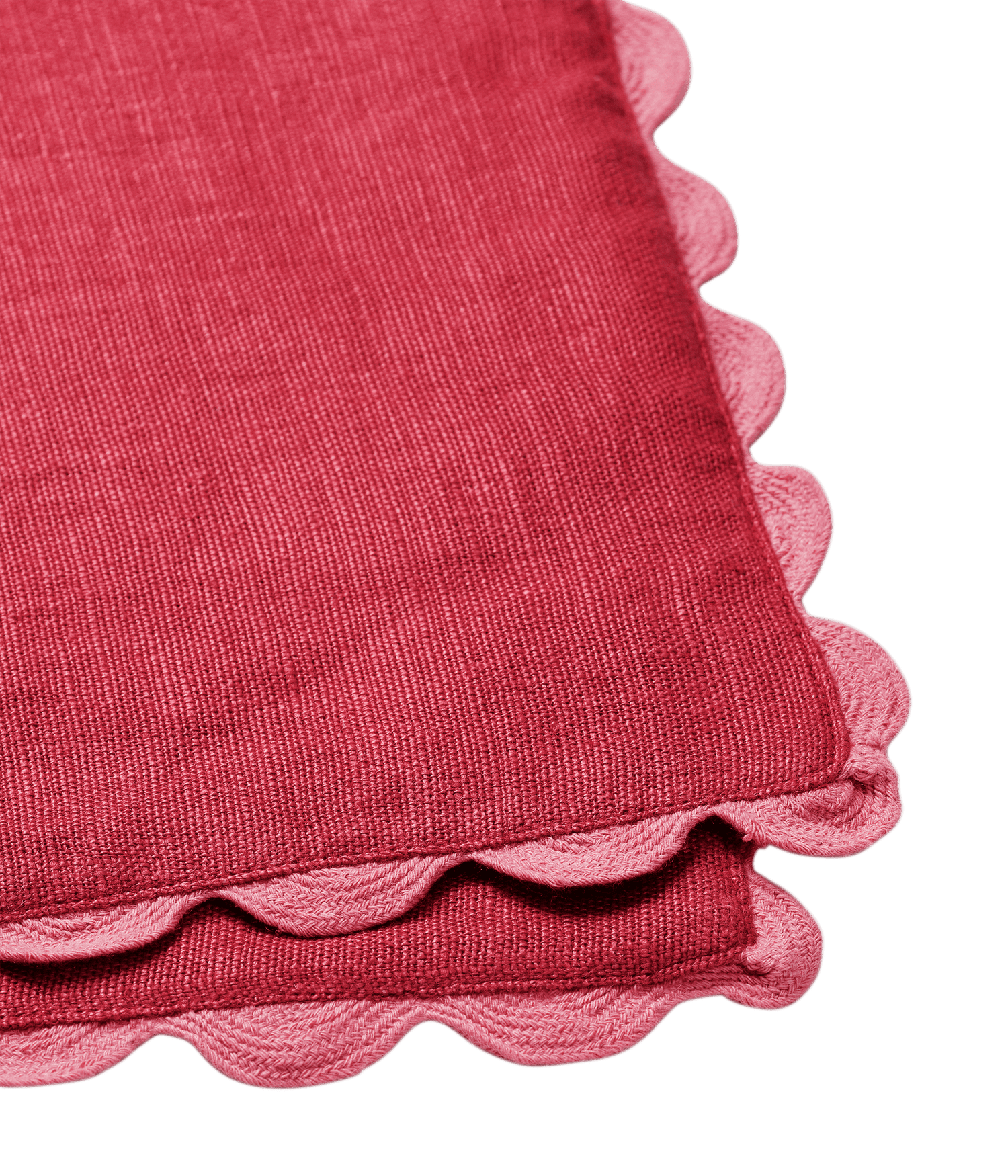 För en klassiskt elegant look är kombinationen av svart, vitt och djupt rött det perfekta valet för en sofistikerad känsla. Låt de handmålade rosettmotiven addera en charmig touch till dukningen.