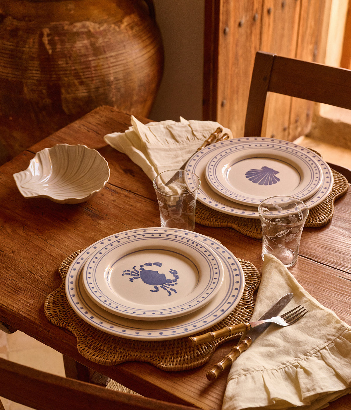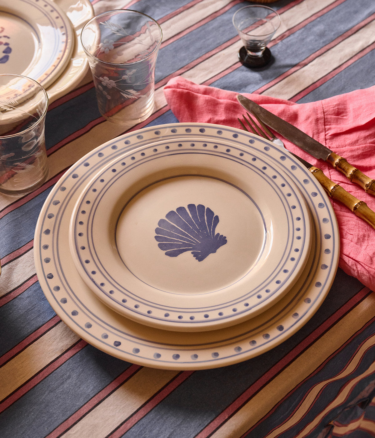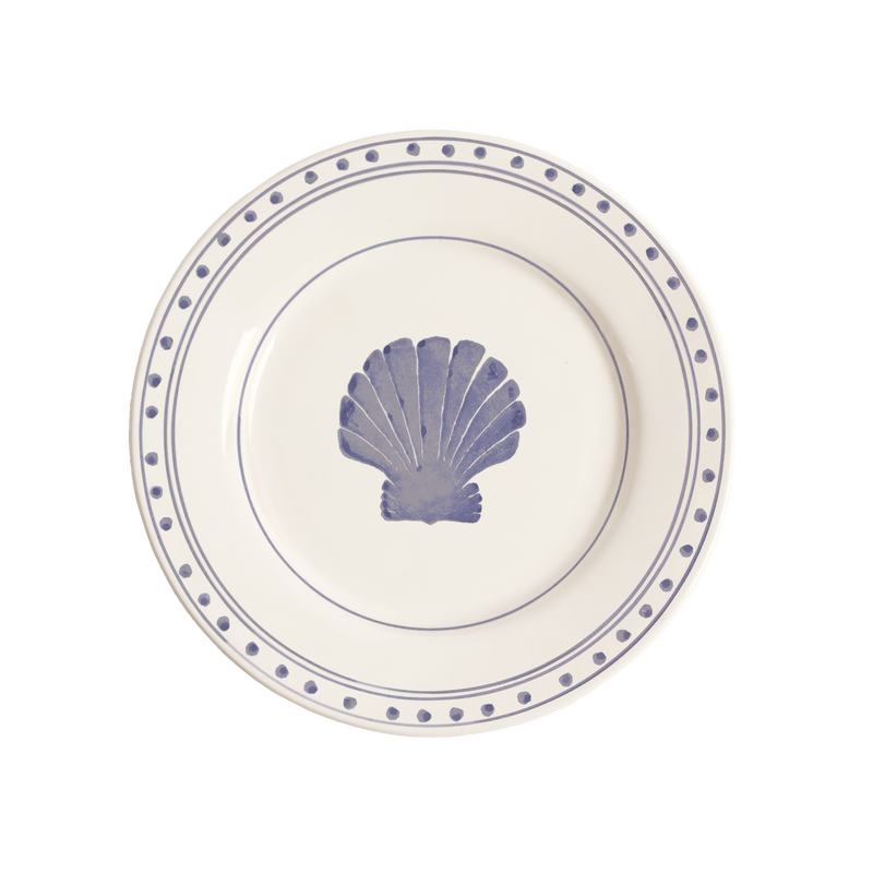 Denna produkt är en del av vår kollektion Marine. Tallriken Shell är handgjord i lergods med traditionellt hantverk i Portugal och har ett handmålat snäckmotiv kombinerat med en dekorativ kant. Inspirerad av livet vid kusten, adderar denna tallrik en touch av maritim charm till varje måltidsupplevelse.