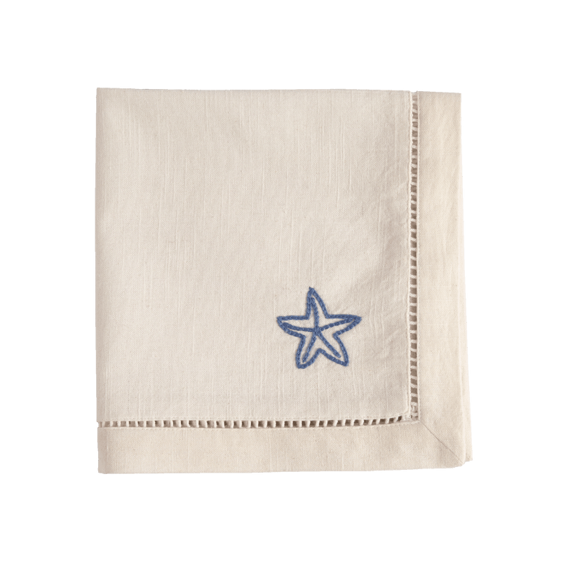Oavsett om du ska annordna en formell middagsbjudning eller intar en avslappnad måltid i trädgården, tillför vår flirtiga men sofistikerade vita bomullsservett en touch av lekfull elegans. Starfish är handgjord i 100% bomull och kommer i en krispigt vit färg, handbroderad med en sjöstjärna i en kontrasterande färg.