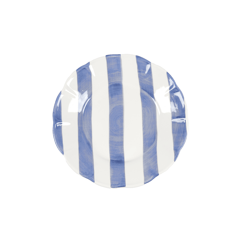 Denna produkt är en del av vår kollektion Stripe. Vår assiett Stripe är handgjord och handmålad i Portugal och kommer i tre lekfulla färger: blå, röd och gul, inspirerade av de soldränkta vyerna vid Amalfikusten. Mixa och matcha med vår middagstallrik från samma serie för den fullständiga Medelhavslooken!